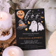 Invitation Baby shower de Boo Halloween avec 2 fantômes aquarelle, un casquette sorcier et un ballon citrouille.