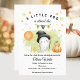 A little boo is almost due. Halloween Little Boo Baby Shower Invitation with a cute watercolor baby ghost with a witch hat, pumpkins, hearts, stars and an orange balloon. Baby shower invitation editable template.