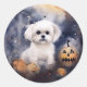 Halloween Maltese With Pumpkins Scary Classic Round Sticker