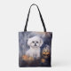 Halloween Maltese With Pumpkins Scary Tote Bag