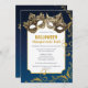 Invite your guests to a glamourous Halloween masquerade ball with this stunning invitation. Featuring gold masks, a bokeh background, and gold glitter swirls, it sets the perfect tone for an elegant and mysterious event.