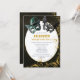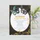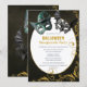 Invite your guests to a haunted Halloween masquerade party with this stunning invitation. Featuring frightful masks, a green smoky / bokeh background, and gold glitter swirls. This invitation sets the perfect tone for a fun and mysterious event.
