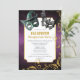Invite your guests to a glamourous Halloween masquerade party with this stunning invitation. Featuring frightful masks, a purple smoky background, and gold glitter swirls, it sets the perfect tone for an fun and mysterious event.