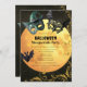 Invite your friends to an elegant Halloween masquerade costume party with our stylish and enchanting invitation featuring elegant masks, a glitter bat, a golden moon, and a starry background. Get ready for a night of mystery and fun with your guests!