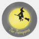 Halloween Modern Whimsical Witch Broomstick Classic Round Sticker