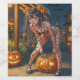 Lily had always been a bit of a rebel. As an Vixen, she'd found a unique way to express her rebellious spirit: Halloween costumes. This year, she'd outdone herself. -- Her costume was a daring blend of spooky fanservice. She'd painted a black bikini on her body, leaving her skin exposed in strategic places. To add a touch of horror, she'd painted two glowing red eyes on her chest, making it appear as though the creature from her nightmares was crawling out. The rest of her body was adorned with tiny, fluttering black bats, adding to the eerie effect. -- As the finishing touch, she'd fashioned four miniature jack-o'-lanterns from papier-mâché and attached them to her hair, like cat ears. These jack-o'-lanterns weren't just decorations. They were part of a secret plan. -- Lily had spent weeks researching folklore and legends about jack-o'-lanterns. She'd discovered a dark secret: some jack-o'-lanterns craved more than just being displayed on doorsteps. They yearned for the sweet taste of candy. -- With this knowledge, Lily had filled her jack-o'-lantern bucket not only with candy but also with a special concoction she'd created to lure the spirits of jack-o'-lanterns. As she walked through the neighbourhood, she'd feel a strange tingle whenever a jack-o'-lantern was nearby. -- One particularly large jack-o'-lantern, with a particularly menacing grin, seemed to be drawn to her. As she bent down to pick up her bucket, the jack-o'-lantern glowed an eerie green and began to move. It was alive! -- The jack-o'-lantern, about a foot tall and wide, had a face that seemed to shift and contort. It reached out with bony fingers and snatched a piece of candy from the bucket. Lily watched in horror as the jack-o'-lantern devoured the candy, its eyes glowing brighter with each bite. -- As the night wore on, Lily continued to collect candy, but she always made sure to fatten the jack-o'-lantern. She knew that this was the creature's true desire was to consume more and more candy. -- Lily had always enjoyed the visceral thrill of smashing things. As a child, she'd taken great pleasure in stomping on leaves and bursting bubbles. Now, as an adult, she found a new outlet for her destructive tendencies: Halloween. -- As she stood over the jack-o'-lantern, a sense of anticipation filled her. She raised her foot and brought it down with a satisfying thump. The jack-o'-lantern exploded in a shower of pumpkin guts, seeds, and candy night's reward. -- Lily laughed as the sticky mess splattered across her bodypaint. The combination of pumpkin and candy created a sweet, yet slightly grotesque, aroma. She reached down and scooped up a handful of the mixture, tossing it into the air. -- As the pumpkin remains rained down on her, Lily felt a sense of liberation. It was as if she were shedding the constraints of everyday life, embracing the chaos and the unknown. The jack-o'-lantern, with its mischievous spirit, had become a symbol of her own rebellious nature. -- And so, Lily danced in the pumpkin-filled mess, her laughter echoing through the night. It was a moment of pure, unadulterated joy, a testament to the power of Halloween to bring out the evil child within us all. -- AI generated Artwork by me "Chris at Zazzle" made & modified this Work with Shakker AI and Photoshop.