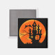 A spooky image of a creepy haunted house, complete with a flying bat overhead, all set against a blood orange full moon for Halloween.