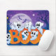 Halloween Mouse pad/Haunted Scene with cute Ghost saying Boo Create a custom mouse pad for home and office! Decorate your desk with your favourite image or choose from thousands of designs that look great and protect your mouse from scratches and debris. 9.25" x 7.75" – Perfect for any desk or work space. Quality, full-colour printing. Durable cloth cover is dust and stain resistant. Non-slip backing. No minimum order.