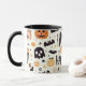 Product Description: This is a special mug filled with the spirit of Halloween. It is a perfect item for the Halloween season as it depicts various Halloween characters such as cute ghosts, pumpkins, witches, and more. Enjoy some Halloween fun with a warm drink from this mug!