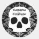 Envelope seals in black and grey damask with a white skull on them. Personalize them with your monogram and two names. Perfect for Halloween weddings.
