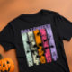 Celebrate this Halloween with our split-panel “Halloween Night” t-shirt. It is a distressed design with pastel colour panels and a graphic of a skull intertwined with roses and Halloween icons such as spiders, bats, and grinning jack-o’-lantern placed in a pastel green, cream, orange, pink and purple colour Platte. It is a perfect blend of spooky and stylish design for celebrating Halloween. You can customize the back of the shirt to give it a personal touch.