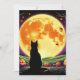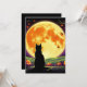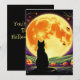 Send this illustrated invitation to your friends to your Halloween party. The design is of a mysterious black cat sits in silhouette against a bright full moon with a deep sky in shades of black, orange and purple. Jack-o'-lanterns, pumpkins and decorative accents glow with twisted branches scattered across a rolling hills and distant trees.