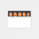 Fun Halloween holiday notes featuring row of cartoon Jack-o-lanterns. Edit text to customize.