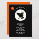 Creative Halloween themed birthday party invites featuring a cute witch with a balloon flying across the moon.