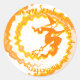 Halloween flying witch on broomstick with neon orange yellow magic spell Swirl spooky cute funny stickers.