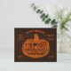 Orange Halloween pumpkin birthday party budget flat card invitation for kids. Spooky, gothic, fall, vintage texture printed design. Image copyright Marg Seregelyi Photography.