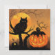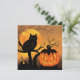 Halloween. Owl in tree with pumpkin. Moon. Card