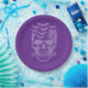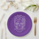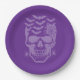 Halloween party paper plate is shown with a spooky skull print.