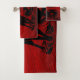 Ensemble de serviettes de bain Red Scary Citrouille de la fête d'Halloween Malin Black Cat Rouge. Unique, beau, design élégant. Facile à personnaliser. Le style de police, la taille et les couleurs peuvent être modifiés. Des éléments correspondants sont disponibles.