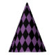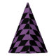 This party hat is shown in a black and purple Halloween diamonds print.