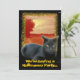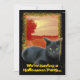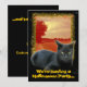 Black cat with a slightly diabolic expression in front of an autumn-coloured full-moon scene. Text "We're having a Halloween Party... and you are invited! Date, Time, Location, Costumes appreciated". Remember to fill in your own dates.