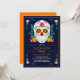 Colourful floral Sugar Skull frame. Halloween customizable party invitation.