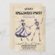 A spooky yet playful vintage-style Halloween invitation featuring skeletons dancing in eerie style. Perfect for Halloween parties with cocktails, music, and fun. Personalize easily with your party details.