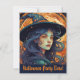 Customizable Halloween Party Invitation Postcard with a Witch Theme – printed double-sided on cardstock with a vintage witch illustration. Ideal for costume or spooky-themed parties.