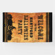 Welcome guests to your Halloween party with this personalized orange and black sign featuring whimsical typography and pumpkins and jack-o-lanterns. Contact the designer via Zazzle Chat or makeitaboutyoustore@gmail.com if you'd like this design modified, on another size banner, on another product or would like like coordinating items.