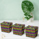 Party favour box is shown with a Halloween multi colour stripes print on all panels.