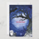 Spooky fun Halloween Invitation with black and white details of flying witch and spooky pumpkins. With watercolor gloomy background. Easy to personalize. Creepy typography on front and back. Happy Halloween!