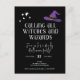 Bring magical vibes to your Halloween party with this cute invitaiton. Text: "Calling all witches and wizards. Join us for a spooky Halloween party!" Easy to customize with all your party details. Featuring a wizards hat, and stars illustrations.