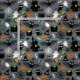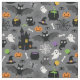 Funny Halloween pattern with bats, cats, spiders, ghosts, pumpkins, haunted house, lollipops.