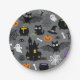 Funny Halloween pattern with bats, cats, spiders, ghosts, pumpkins, haunted house, lollipops.