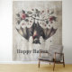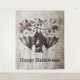 Halloween Pink Flowers Evil Bat Green Leaves Tapestry