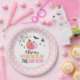 Halloween birthday paper plates with pink pumpkins and pink star background..