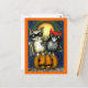 Little bat and raven doing trick-or-treat on a starry Halloween night