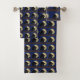 Bath Towel Set Of Three Sizes decorative bathroom amenity and home furnishing decor accessory printed with a Halloween Prowling Black Cat On A Full Moon Night hand drawn graphic artwork drawing design illustration by TheFabricSeal print on demand shop at Zazzle.com #ZazzleMade ©️Original. https://www.zazzle.com/store/thefabricseal