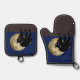 Oven Mitt and Pot Holder Set printed with a Halloween Prowling Black Cat On A Full Moon Night hand drawn graphic artwork drawing design illustration by TheFabricSeal print on demand shop at Zazzle.com #ZazzleMade ©️Original. https://www.zazzle.com/store/thefabricseal