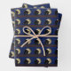 Gift Giving Package Wrapping Paper set of 3 sheets printed with a Halloween Prowling Black Cat On A Full Moon Night hand drawn graphic artwork drawing design illustration by TheFabricSeal print on demand shop at Zazzle.com #ZazzleMade ©️Original. https://www.zazzle.com/store/thefabricseal