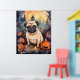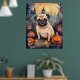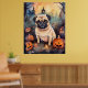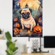Halloween Pug With Pumpkins Scary Poster