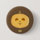 Halloween pumpkin on brown background button. Hi word can be personalized.