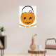Adorable Halloween style pumpkin bucket is filled with tasty candy. Text reads, Trick Or Treat.