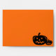 Halloween pumpkin head carving orange and black envelope. Custom envelopes for Halloween party invites and cards. Cute carved pumpkin face design in the corner.