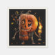 A halloween funny pumpkin jack-o'-lantern in the shape of the letter "P" holding a lamp with a flame.