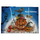 A black raven sits atop a Jack O Lantern in front of a spooky, moonlit Halloween night. Happy Halloween! Matching invitations, cups, paper plates and more are available for a Halloween party! Personalize both sides!
