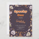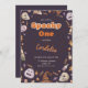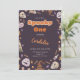 Designed for our Halloween Birthday collection, this customizable Invitation Card features dark purple background, pink pumpkin, spooky skull, orange spider web, handwriting & sans serif fonts. Matching items available.