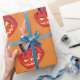 Halloween pumpkins drawing and custom background color wrapping paper.