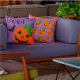 This Purple throw pillow with a charming funny orange jack-o'-lantern, a black bat and the text "Boo!" On the front is just the thing to bring a touch of Halloween into your home! Would be so much fun to have this pillow on a bench by the front door next to your matching Door Mat! Comes in square sizes only.