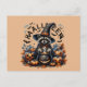 Halloween Raccoon Witch with Pumpkin Cauldron Holiday Postcard